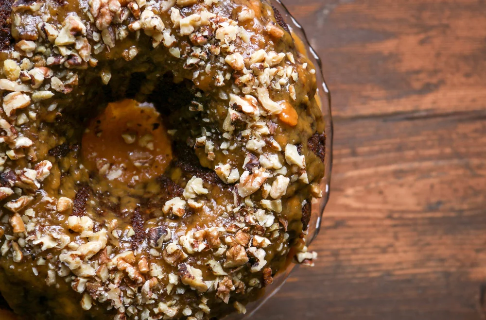 The Hungry Hounds Apple Walnut Bundt Cake With Caramel Glaze